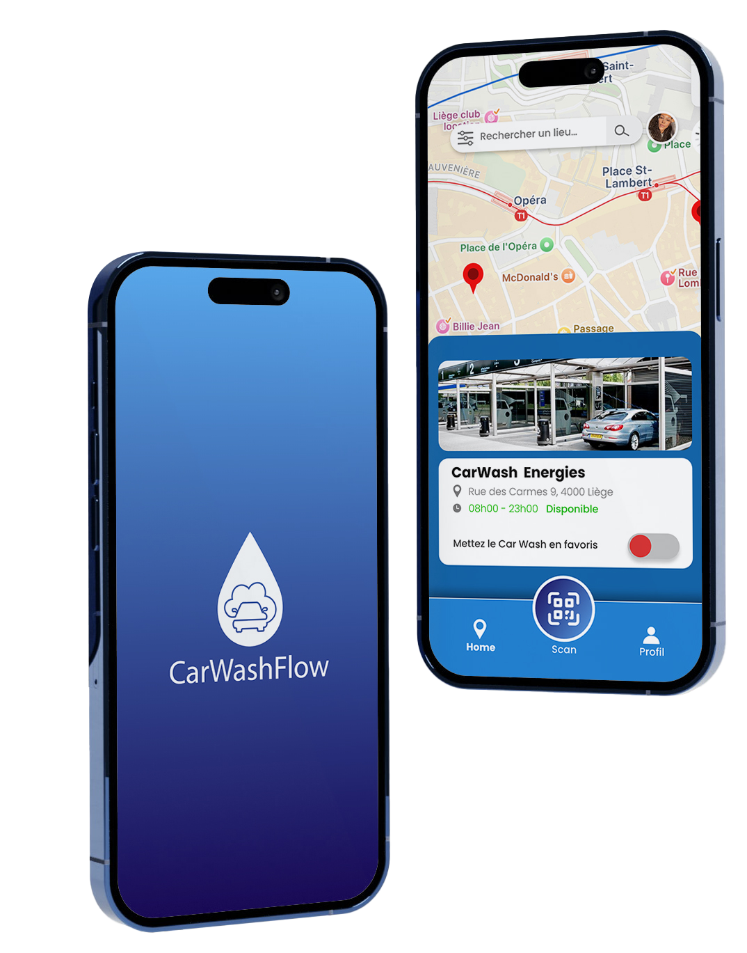 Une carte interactive est disponible dans l’application pour localiser facilement les carwashs partenaires autour de vous.